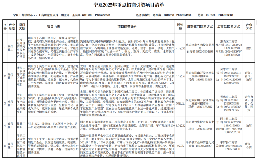首页 >> 招商引资 >>默认分类 >> 宁夏 2025 年重点招商引资项目清单